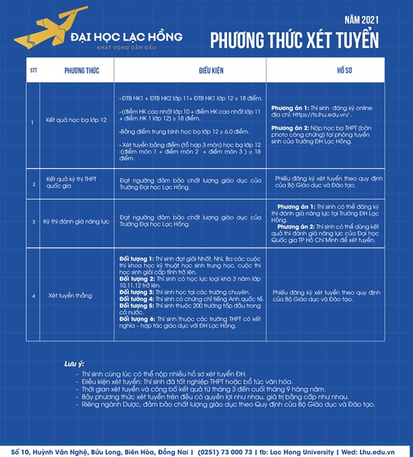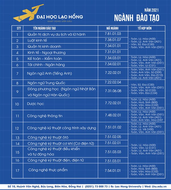 Năm 2021, Trường Đại học Lạc Hồng thông báo tuyển sinh 17 ngành hệ đại học chính quy: