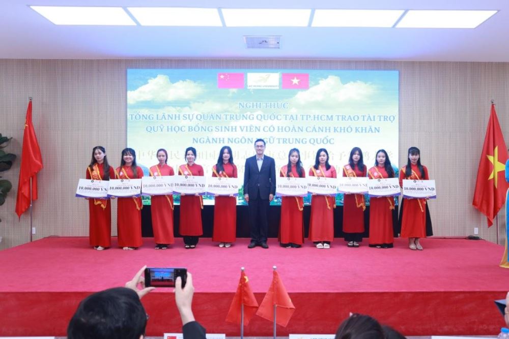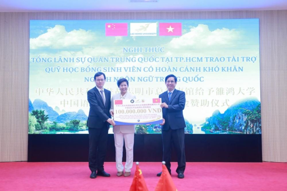 Tổng Lãnh sự quán Trung Quốc tại TP. Hồ Chí Minh tài trợ 100 triệu đồng cho “Quỹ học bổng sinh viên có hoàn cảnh khó khăn Ngành ngôn ngữ Trung Quốc”
