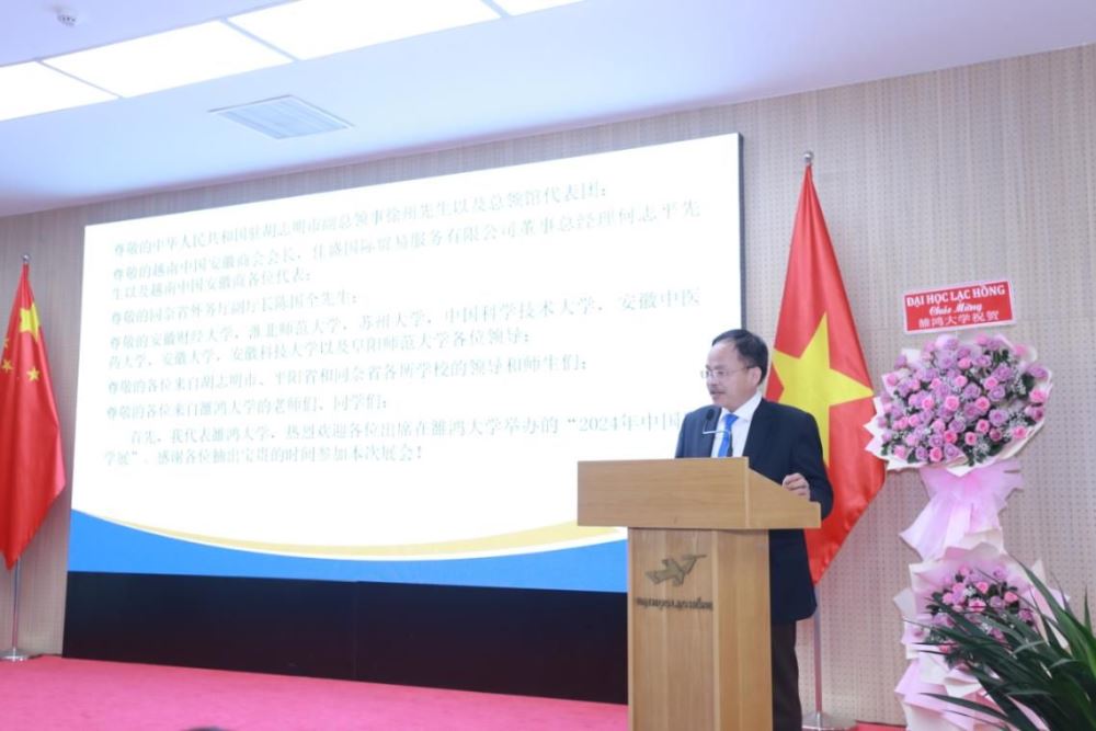 Ông Trương Nham - Phó Viện trưởng học viện giáo dục quốc tế Trường Đại học An Huy đại diện 08 trường Đại học phát biểu và chia sẻ định hướng du học tại sự kiện