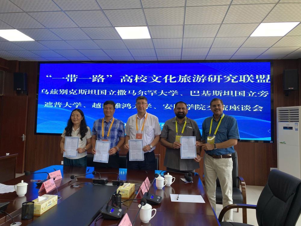 Hình 2:Đoàn LHU tham dự buổi toạ đàm hợp tác với các trường Đại học tại Uzbekistan, Pakistan và học viện An Thuận (Trung Quốc)
