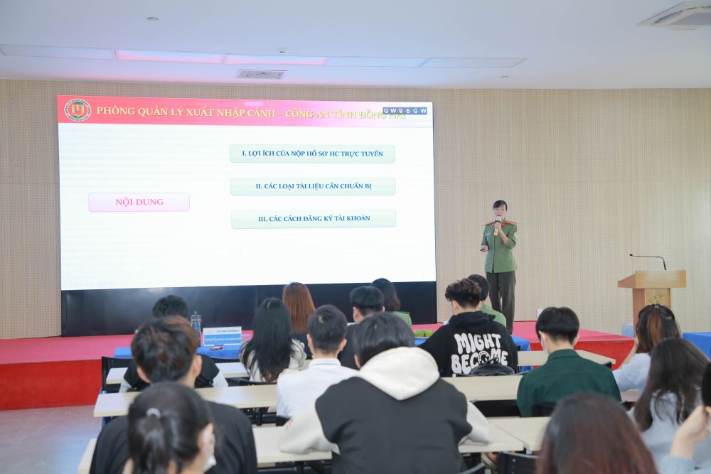 Tại buổi hướng dẫn Đại diện Phòng Quản Lý Xuất Nhập Cảnh đã hướng dẫn chi tiết về quy trình nộp hồ sơ xin cấp hộ chiếu trực tuyến và giải đáp thắc mắc của cán bộ, giảng viên, nhân viên và sinh viên liên quan đến thủ tục cấp hộ chiếu.