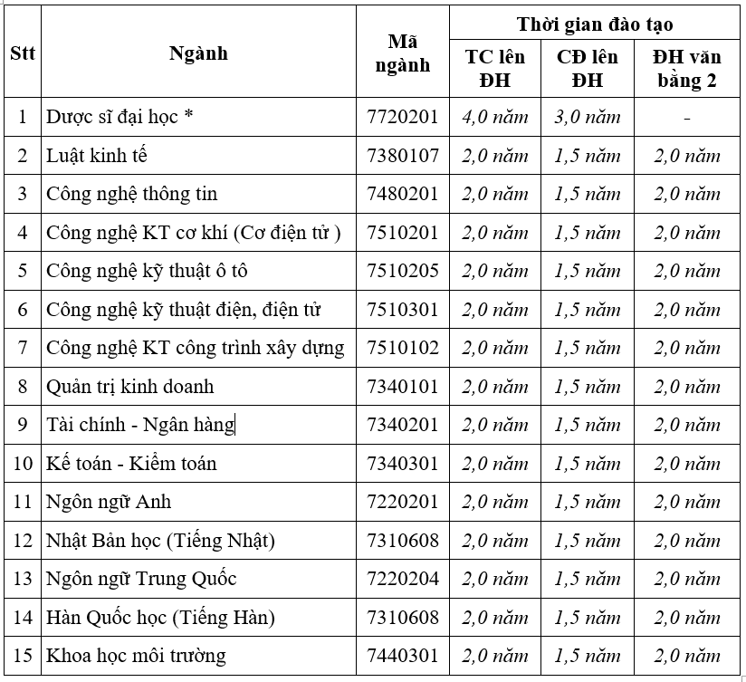 •    Hệ đại học văn bằng 2 chính quy: Xét tuyển thẳng đối tượng đã tốt nghiệp đại học, không phân biệt hệ đào tạo.