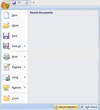 Bước 1: Bạn chọn  Menu -> Word Options .