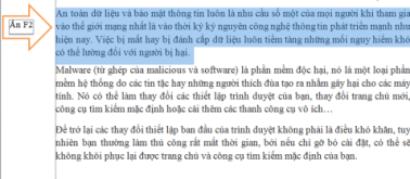 Bạn có thể chọn toàn bộ một đoạn văn bản khi kích chuột trái 3 lần vào bất kì chỗ nào trong đoạn văn bản đó. Hoặc giữ phím Ctrl và bấm vào vị trí bất kì trong 1 câu để chọn câu đó ( Lưu ý: Câu đó được giới hạn bởi 2 dấu chấm ).