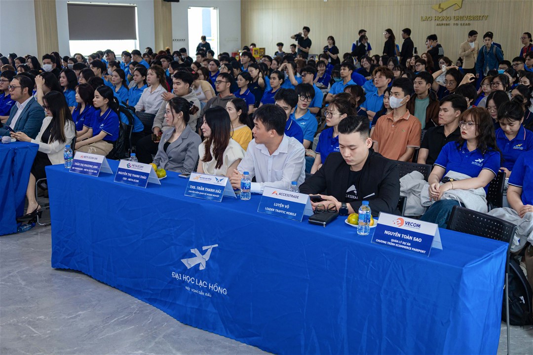 From Lac Hong University, the event welcomed Dr. Huynh Cao Tuan – Vice Rector, along with leadership representatives from the Faculty of Information Technology, including M.Sc. Nguyen Minh Son – Vice Dean, and M.Sc. Bui Thi Thu Trang – Head of the E-commerce Department, alongside numerous faculty members and students.