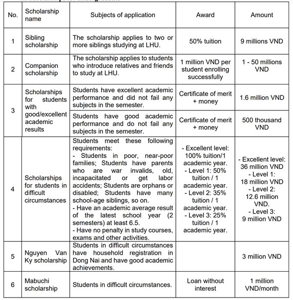 Scholarship policies of LHU for students majoring in pharmacy