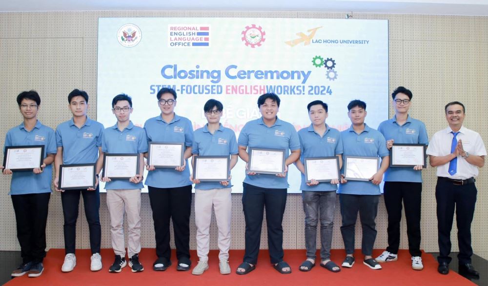 On the morning of November 14, 2024, Lạc Hồng University held the Closing Ceremony for the EnglishWorks! 2024 program. This event marked the completion of a meaningful six-month academic journey, fully sponsored by the Regional English Language Office (RELO), the U.S. Consulate General in Ho Chi Minh City, and the SEAMEO Regional Training Center (RETRAC) in Vietnam.