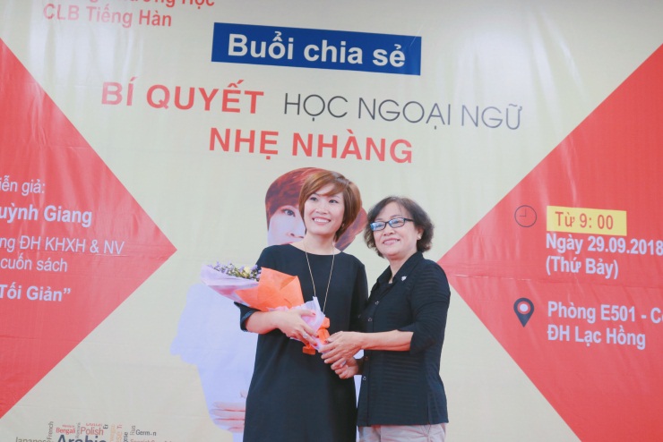 Khách mời chính của buổi sinh hoạt là Diễn giả Th.S Phạm Quỳnh Giang, giảng viên tiếng Hàn của Trường ĐH Khoa Học – Xã Hội và Nhân văn TP.HCM. Cô là tác giả của cuốn sách đang được yêu thích hiện nay “Người Tối Giản” và đồng thời là dịch giả của rất nhiều đầu sách Hàn – Việt khác. Đến với buổi sinh hoạt cô đã cung cấp cho sinh viên rất nhiều thông tin bổ ích xoay quanh vấn đề khó khăn trong việc học ngoại ngữ. Làm thế nào để “người vừa lười, không có năng khiếu và ngại tiếp xúc với người bản xứ” có thể học ngoại ngữ hiệu quả, nhanh chóng nhất.