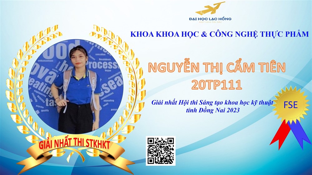 The Faculty of Science & Food Technology - Nguyen Thi Cam Tien, First Prize Winner of the Dong Nai Province Science and Technology Creativity Contest