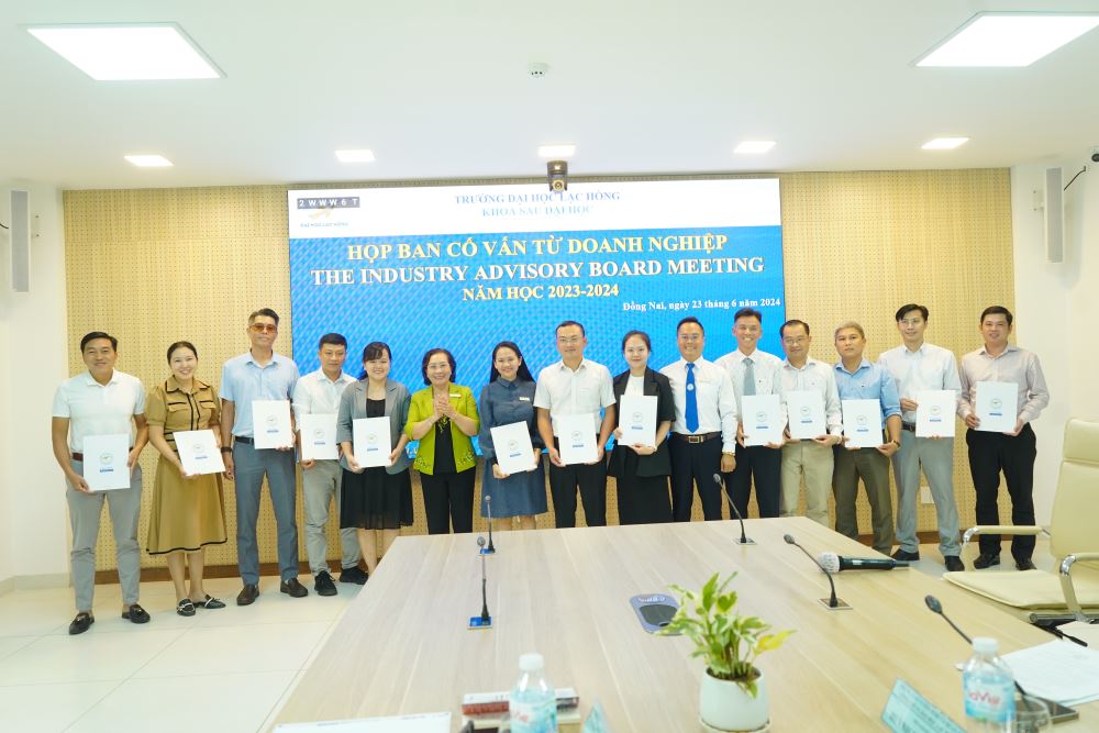 On the morning of June 23, 2024, at the conference room of Campus 1, the Enterprise Advisory Board meeting took place with the participation of the university leadership, the Faculty of Postgraduate Studies, the Admissions and Public Relations Center of Lac Hong University, and representatives from long-established businesses in the province and neighboring areas.