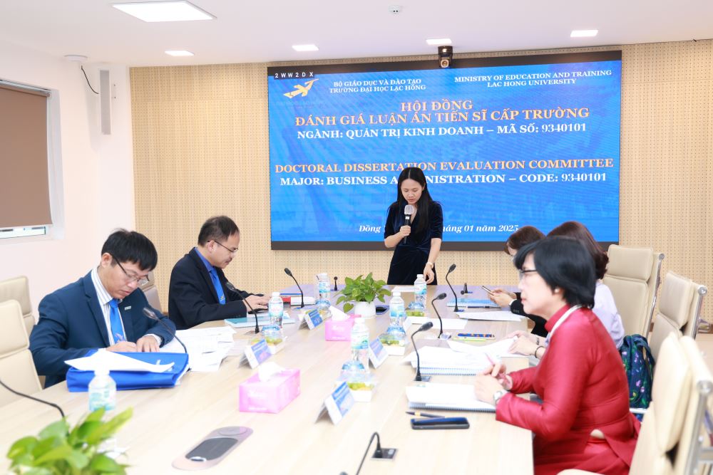 On the morning of January 11, 2025, at the meeting room of Campus 1, Lac Hong University held the University-level Doctoral Dissertation Evaluation Committee in Business Administration for the doctoral candidate Duong Thi Phuong Hanh, with the dissertation topic: "Factors affecting work motivation of university lecturers in Dong Nai."