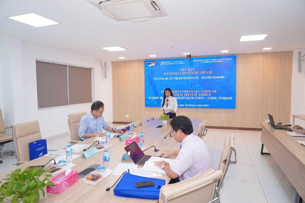 On May 28, 2025, at the meeting room of Campus 1, Lac Hong University, four doctoral candidates — Nguyen Dinh Nghia, Vy Vu Quynh Nhu, Dinh Van Quang, and Do The Thang — from the Business Administration program successfully completed the review session for their doctoral dissertation proposals.