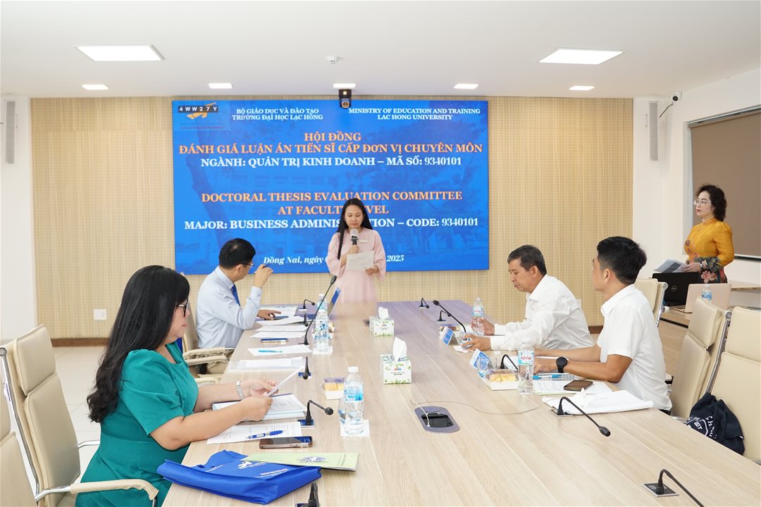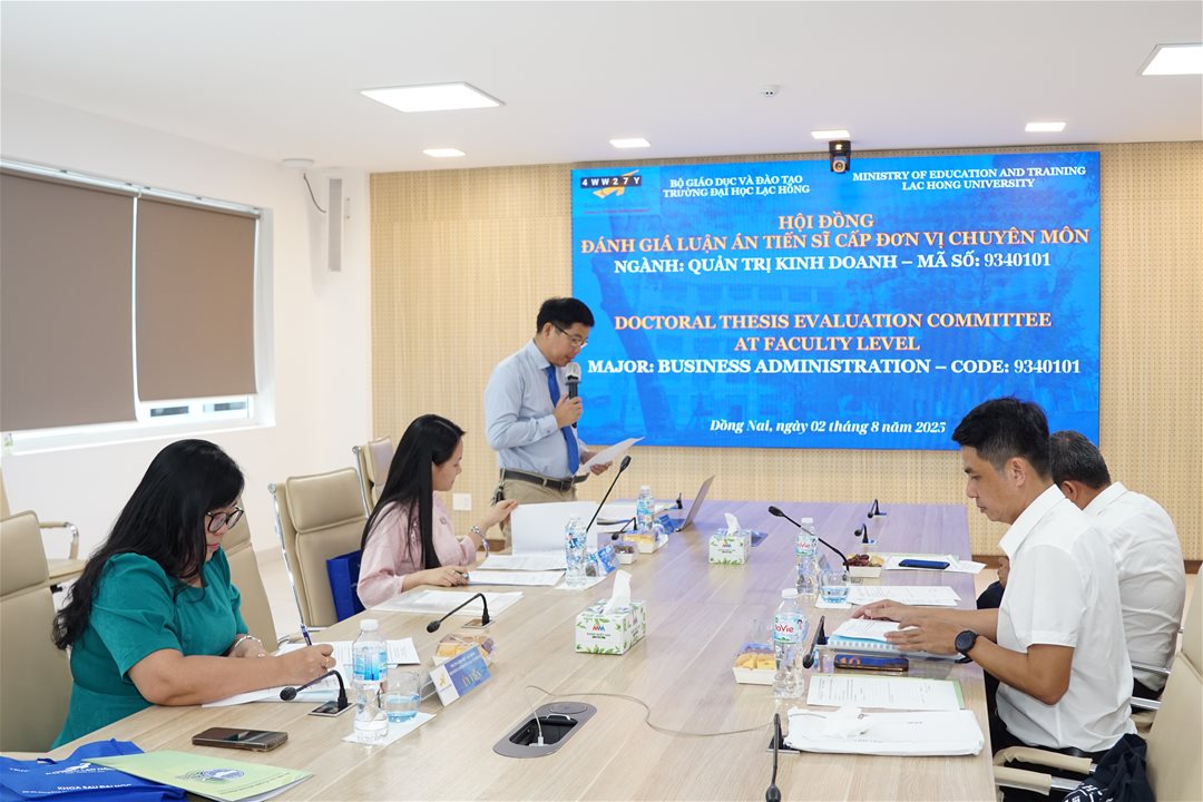 On August 2, 2025, at the meeting room of Campus 1, the Faculty of Postgraduate Studies, Lac Hong University, held the Faculty-Level Doctoral Dissertation Defense Committee for the Business Administration programme to assess the doctoral dissertation of Ph.D. candidate Vy Vu Hong Thao.